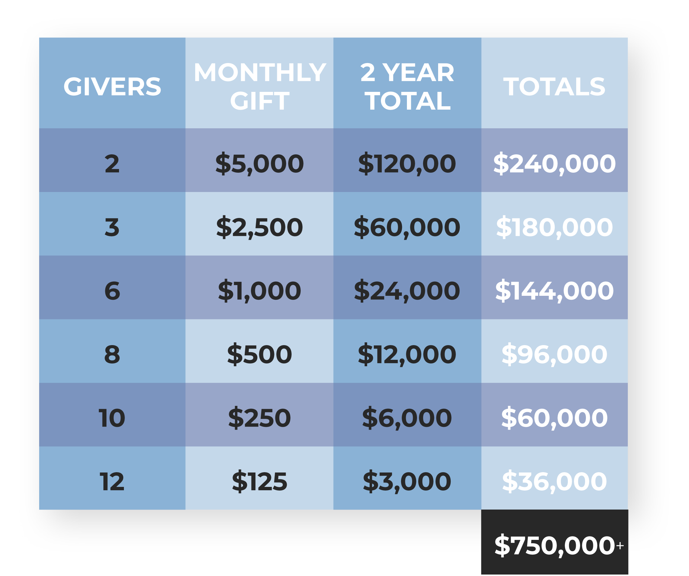 Our goal is 100% participation, trusting God to work through each gift. Please pray, seek God’s guidance, and consider what sacrificial giving looks like for you above and beyond your regular giving.
